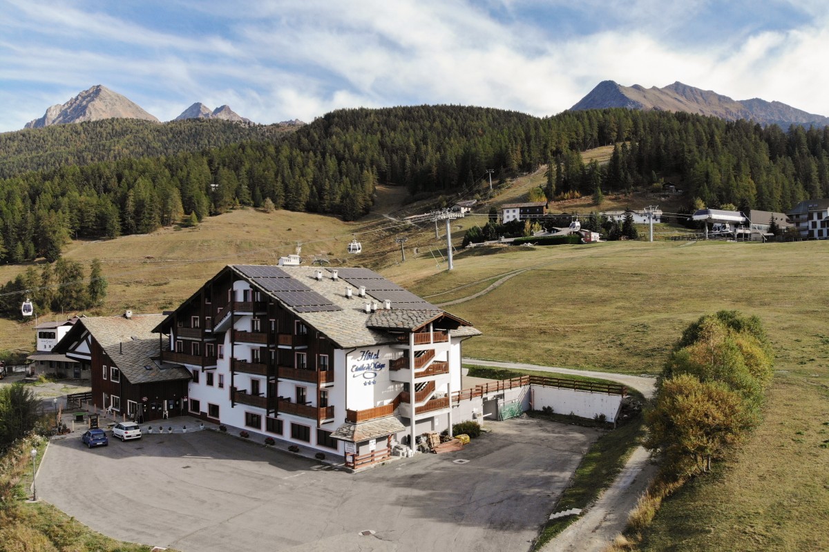 Costruito seguendo le linee architettoniche tradizionali, l'hotel ricorda il tipico hotel di montagna che si inserisce perfettamente nell'ambiente circostante e gode di una vista completa su tutta la valle.