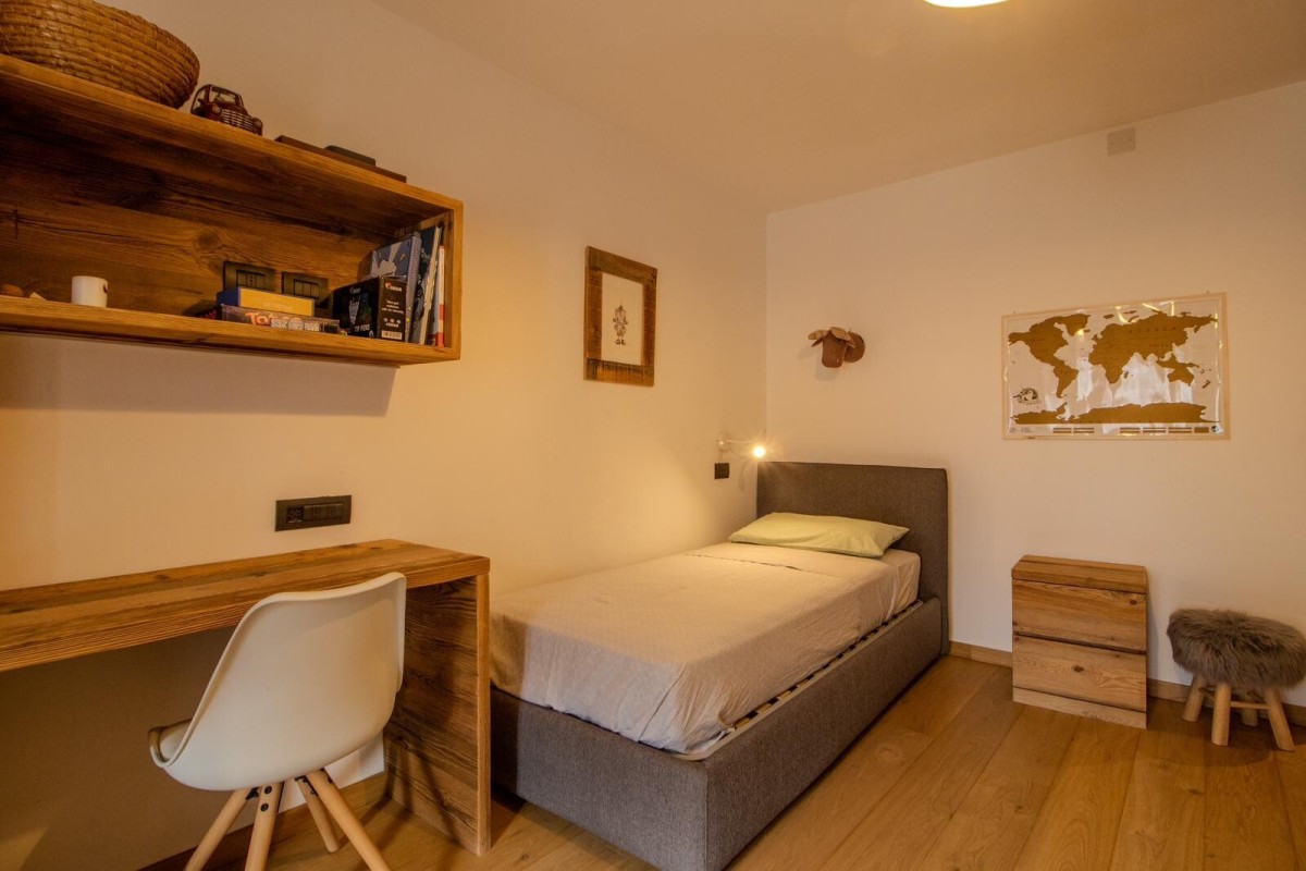 L'alloggio è composto da ingresso, disimpegno, soggiorno, cucina con zona pranzo abitabile, camera da letto matrimoniale, camera da letto con 2 letti singoli e bagno.